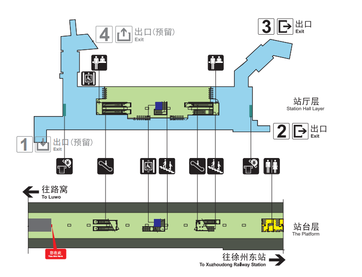 无障碍电梯:站厅层中部