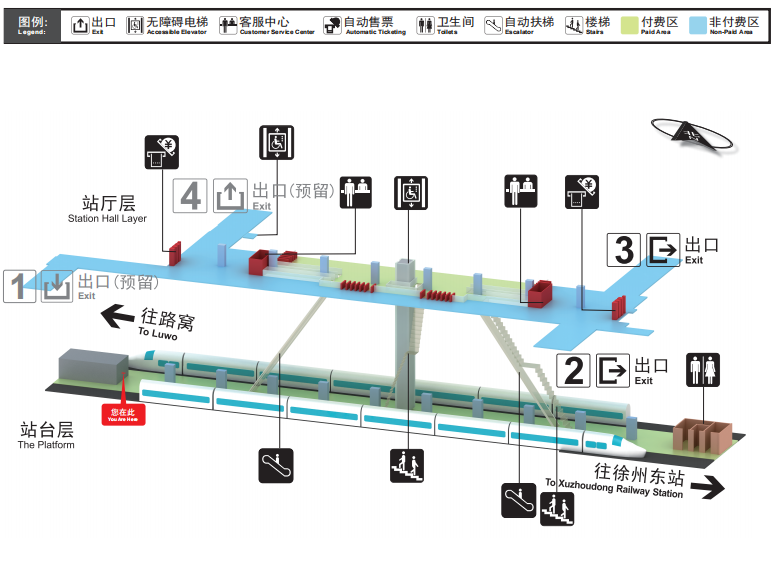 客服中心:站厅层东西两侧