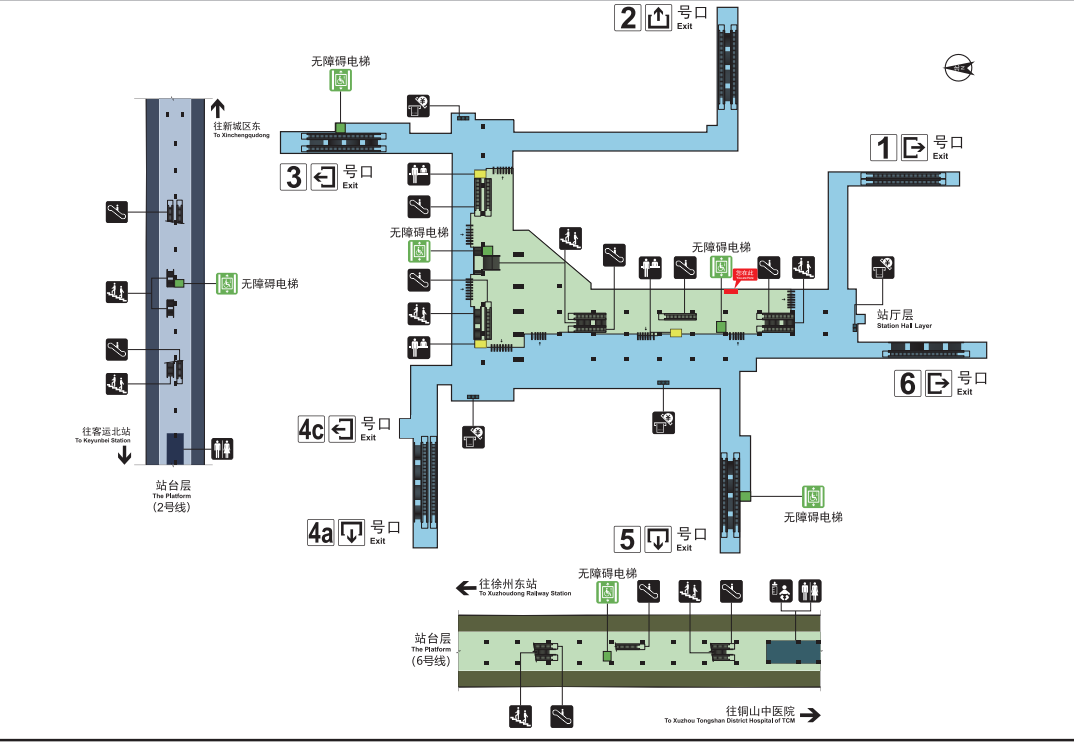 无障碍电梯:站厅层中部/5号入口侧