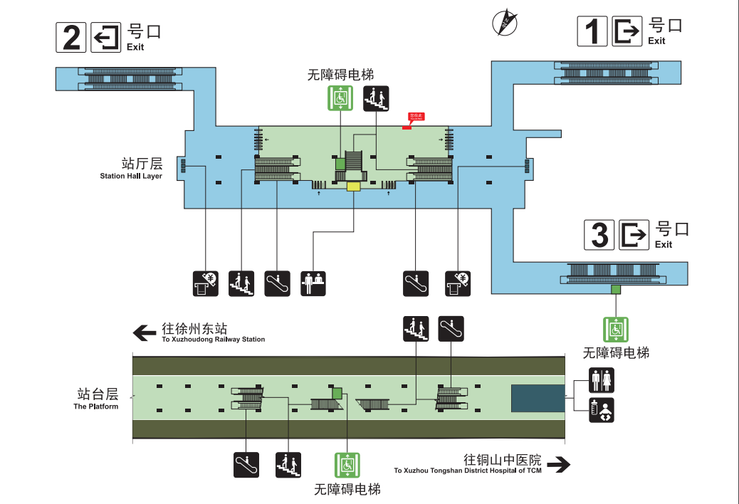无障碍电梯:站厅层中部/3号入口侧